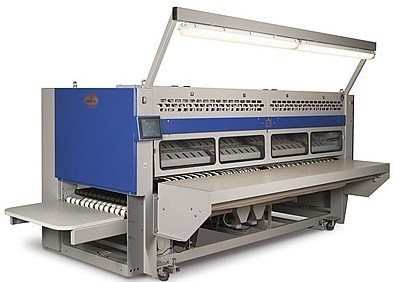折叠机特点1、具有布草传送系统的速度控制和准确定位,对布料长度准确测定并计算折叠长度。